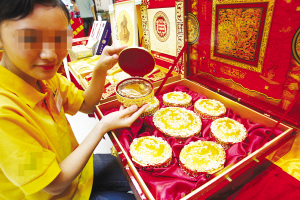 营业员正展示价值2888元的月饼。 图片来源:重庆商报