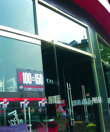 该生活馆收银台一名工作人员告诉记者,这是他们为迎接“五一”搞的活动,符合条件的人民币在消费时不限量,不管多少都能当150元使用。当记者问这种促销方式是否合适时,该店负责人表示,他们这样做就是想让利给顾客,从来没有考虑过有什么不合适,而且,他们已经到处做广告,发宣传单页,即使改也来不及了。