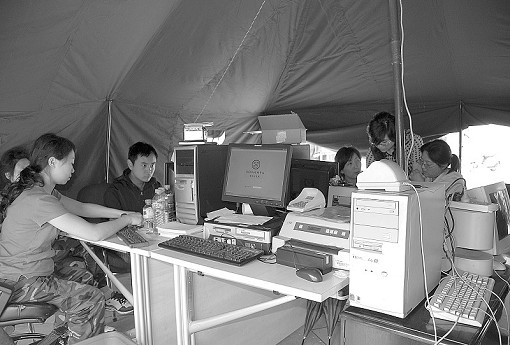 据现场工作人员介绍,现在如果市民在灾难中遗失了银行卡和存折,只凭本人身份证可以在帐篷银行办理挂失,但是取现暂时无法实现。“根据特事特办的原则,我们总行正在根据最新情况研究处理方案,希望能为更多的市民提供服务。”
