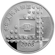 该枚银质纪念币正面图案为象征钱币的点和装饰线与北京国际邮票钱币博览会会标组合设计图,并刊国名、年号。