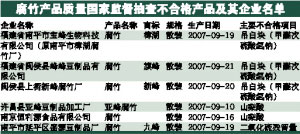 还有1款腐竹被验出超量使用漂白剂,造成二氧化硫残留量超标。抽查中有腐竹的二氧化硫残留量实测值为0.5g/kg,是国家标准规定要求的两倍多。