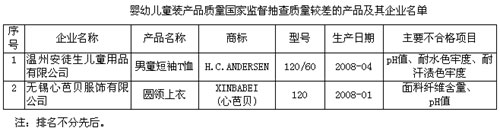 婴幼儿童装产品质量国家监督抽查质量较差的产品及其企业名单