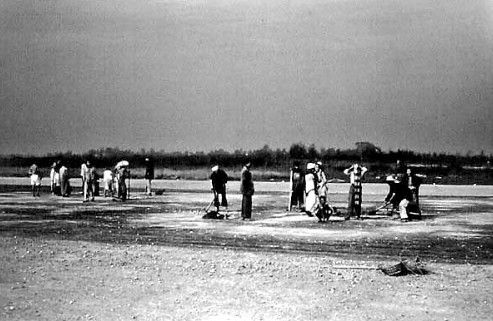 在这本书中,收录了拉森和迪柏拍摄的反映抗战时期成都面貌的照片约20张。这些照片中,不仅展现了民工在新津为“飞虎队”修建空军机场辛勤劳作的场景,更多的是反映了抗战时期大后方人民的生活场景:商业区繁华的绸缎商铺街入口;华西协和大学的教学楼;晾晒小麦、摆摊出售农产品的农民……这些画面让拉森和他的战友觉得新鲜和好奇。从照片上看,当时的锦江上船只往来穿梭,拉森来到船上与戴着斗笠、身穿短褂的船夫们合影,度过了战争时期难得的休闲时光。