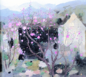 说到故乡——烟雨江南的美,必得看吴冠中的画作《鲁迅故乡》(油画1978年)、《江南人家》(油画1980年)、《静巷》(油画1981年)、《双燕》(墨彩1981年)、《水乡周庄》(墨彩1986年)、《忆江南》(油画1996年;墨彩1996年)、《江南居》(墨彩2000年)、《白墙与白墙》(油画2002年)……从70年代末到21世纪初,这20多年间画家魂牵梦萦的故土,通过写实与写意、具象与抽象、油画与墨彩的交替与叠加,在画面中呈现出一个个基于印象的新奇世界——艺术的境界,如同高飞的风筝系着母亲大地翱翔……“风筝不断线”是他的一个艺术观点,作品是风筝,线是灵感的母体——大众情意。
