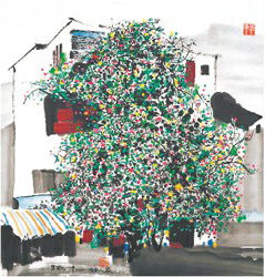 擅长画风景的吴先生对树是情有独钟,他在写生中常常将树作为构成整幅画面形式感的要素,他认为:“风景画中如树不精彩,等于人物构图中的人物蹩脚。”因此,只有把自然人格化,才能画出是有血有肉的草木生命。
