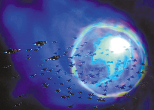 生活着游牧民族 除了在各个星球上土生土长的生物外,霍金还相信宇宙间存在着漂浮的生命体,成群结队地游离在星球与星球之间,属于外星生物中的“游牧民族”。它们会以人类难以想象的技术飘进“虫洞”,霍金认为,这些生物可能用犹如行星般大的“收集器”吸收各个星球的辐射能,进而获得能撕破“虫洞”穿越时空的巨大能量。