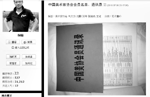 博文中还称“有需求者请联系”,并列出联系人陈先生的手机号。在网上搜索,声称“有中国书协、美协的通讯录,有需求者可与其联系”的帖子也在论坛出现,链接均为该博客。