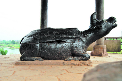 据史料记载,宋绍定年间,县令刘子迈为降服洪水,铸铁犀以镇之。铁犀重约7000公斤,体长2.1米,宽0.8米,卧高1.1米,呈坐卧状。