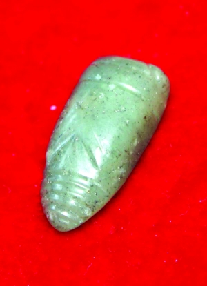 “这件工艺最好。”工作人员指着一块玉佩说,这是一件龙凤佩,又叫鸡心佩,用的是和田玉,特别之处在于雕工了得,李则斌一口气报出四种雕法:透雕、圆雕、浮雕和游丝毛雕,“游丝毛雕,就是雕得细若游丝,可见工艺的精妙。”龙凤佩边上一个玉蝉也很吸引人的眼光,玉色温润清透,而这不是普通的饰品,而是墓主嘴里含的陪葬品。