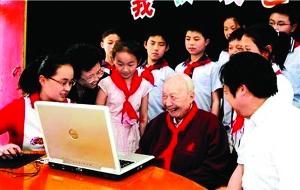 2007年,钱伟长重返母校无锡市荡口中心小学。