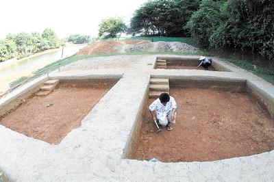今年3月,张兴国带着来自湖南省文物考古研究所、南京大学、武汉大学的20多名工作人员,一头扎进了位于望城县丁字镇彩陶源村的长沙铜官窑遗址,几个月来的发掘让他与同事们收获颇丰:“取泥洞、淘洗池、储泥池、陶车坑、工棚、烘烤炉、釉缸、装窑台面等都基本上被挖掘出来了!”