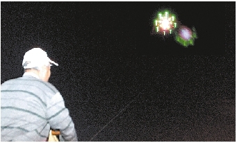 根据不明飞行物大概的方位,记者跟着“飞行物”方向一路寻找,发现不明飞行物就在火车头体育场上空附近,体育场内有人在放夜风筝。原来灯光是夜风筝上夜光设备不断地发出不同颜色的光。