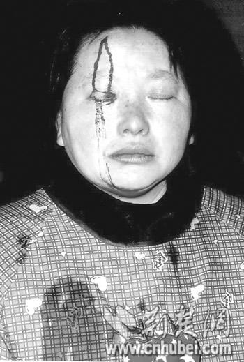 “要干什么?兄弟们要好好招待你一下。”对方说着抄起一只板凳砸在唐英的头上,唐英顿时头破血流。妻子戴开荣见状欲上前阻拦,也被那伙人一顿暴打,晕倒在地。