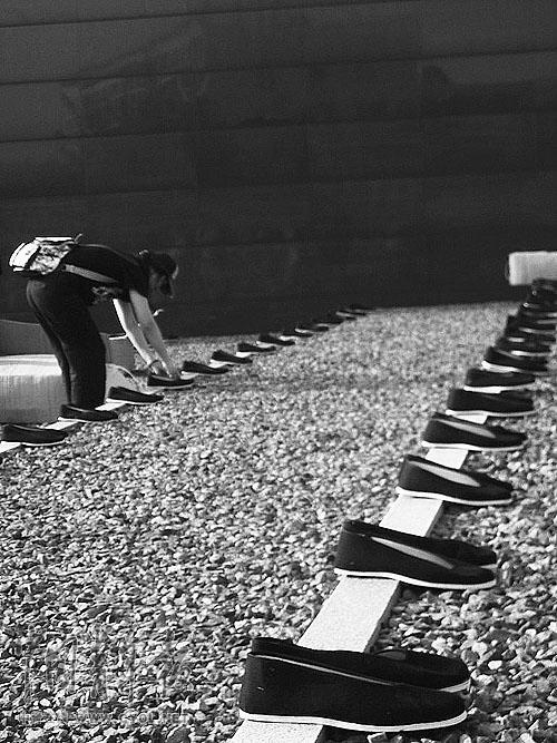 来南京大屠杀遇难同胞纪念馆参观的白发苍苍的日本人,经常被习惯性地认为是来忏悔的日本老兵。但这次摆鞋队伍中的15名日本人,却一个也不是。