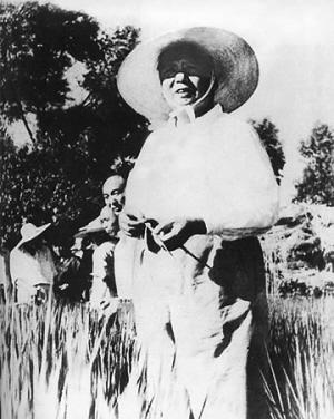 这是毛泽东一生第一次,也是唯一一次来到成都。23年前即遵义会议后,他曾进入四川,带领中央红军飞夺泸定桥,然后进阿坝高原,爬雪山,过草地,历尽艰险,而今他站在成都西门远眺隐约可见的雪山,可能不仅想到了杜甫的著名诗句,更多想到的应是自己曾经出没那里的曲折经历。