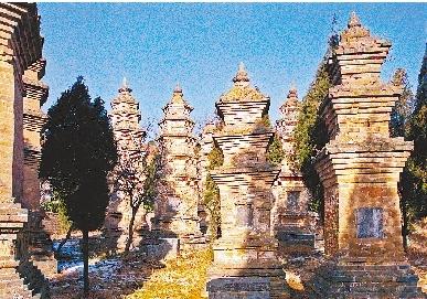 寺西为少林寺历代高僧的墓葬群,因为古塔丛立、势如密林,故称“塔林”,保存着唐、五代、宋、金、元、明、清各代砖石墓塔241座。郑州著名文化学者赵富海更形象称之为“浮屠修来已成林”。