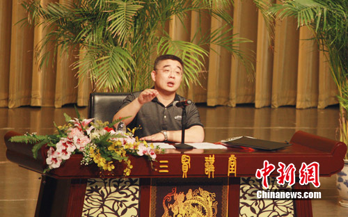 中新网盐城8月20日电(于从文 唐铮)8月20日,复旦大学历史系教授、央视《百家讲坛》主讲人钱文忠教授在江苏盐城开讲“《弟子规》与当代国人的行为处事”。他提出:中国要成为强国,就必须让文化软实力“硬”起来。