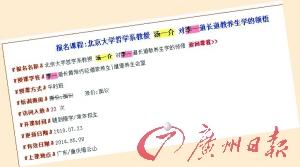 记者上网搜索发现,汤一介与李一长期以来有着较为深入的业务合作。今年7月23日,李一的缙云山曾以汤一介的名头公开组招培训班。课程名称为“李一道长黄帝内经道家养生班”,授课人“汤一介”,讲课内容为“对李一道长道家养生学的领悟”。该网页虽已被删除,但用“百度快照”仍能打开。