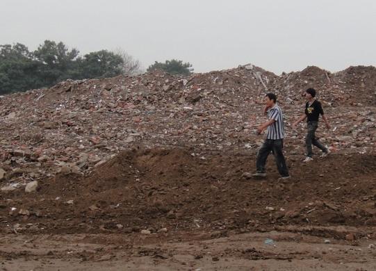 将于10月1号开园的大明宫遗址公园内仍有大量垃圾未清理