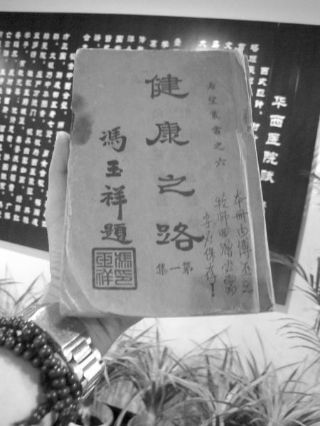 16开的土黄色的牛皮书封面,印有冯玉祥亲笔题写的书名《健康之路》,60多年间被无数人传阅,书边已经发毛打卷。