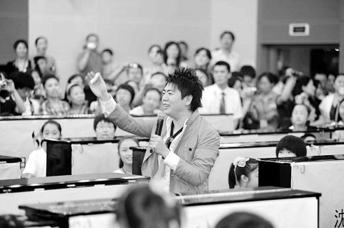 指导多达100名琴童演奏,不专心怎么行?29日下午,郎朗来到沈阳旺族琴行,与本报征集的百名琴童见面。很多人都以为这样的活动肯定是走过场,没想到郎朗却是用心指导每一个孩子,让现场的人非常感动。齐奏会大厅共摆放了50台钢琴,在郎朗的指挥下,百名琴童演奏了舒曼的《军队进行曲》。郎朗从节奏和情感上对琴童们进行了指导,更亲自示范演奏。郎朗表示:“通过这样一个有意义的活动,我才能真正了解小朋友们的钢琴水平到底怎样,演奏中出现什么问题,我可以及时纠正和指导,希望把我所掌握的钢琴演奏技巧告诉他们,让更多的琴童们在钢琴造诣上有一个很大的提升。”