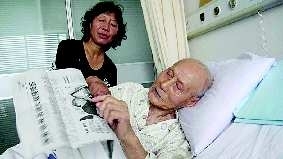 30日上午9时,记者在日照市人民医院保健病房看到,在此疗养的王延周躺在病床上边看电视边输液。90岁高龄的王延周面色红润,眼睛不花,思维敏捷,精神状态良好。