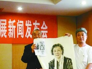 重庆画家将一幅徐悲鸿夫人廖静文女士的画像送给徐庆平(左)
