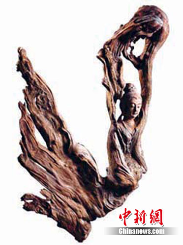 中新网绍兴9月11日电(记者 赵晔娇)记者今天从位于中国女子越剧发源地——浙江省绍兴嵊州市的“全国根雕艺术研究院”获悉,上世纪末和本世纪初,在嵊州剡溪江底,出土了大量深埋千百年的珍稀古沉木。嵊州众多的民间艺人,以古沉木为原料,雕刻加工成一件件珍贵的根雕艺术品。台湾客商为这些艺术品所深深陶醉,更是在台北开出了专营店,让海峡两岸共同感受到了远古的呼唤。
