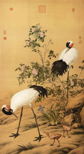 《乾隆大阅图》是郎世宁人物画的代表作,表现的是乾隆打猎阅兵时的盛况。画中,乾隆是头戴盔、身着铠的武装骑马形象。画的内容是乾隆恢复了中断十几年的秋之制,亲率王公大臣、八旗官兵至塞北皇家围场(即今河北围场县),与蒙古八旗会合打猎。郎世宁奉命以大手笔描绘了这位有作为的年轻君主,居安思危、习武练兵,在侍卫大臣前后簇拥护卫下,不顾鞍马劳顿,继续转向新围场的轻松游荡的情景。