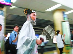 一位还算眉清目秀的年轻男子打扮成诸葛亮的样子,在地铁里忽而吟诵,忽而大笑,做出种种引人侧目的动作。这是最近风靡网络的又一个“神秘人物”。如此装扮却为何?是崇拜古人?是有病?或者干脆就是网络推手在炒作?由于这位“亮叔”手中拿着一本刚上市的新书,网友们怀疑最后一种的可能性最大。
