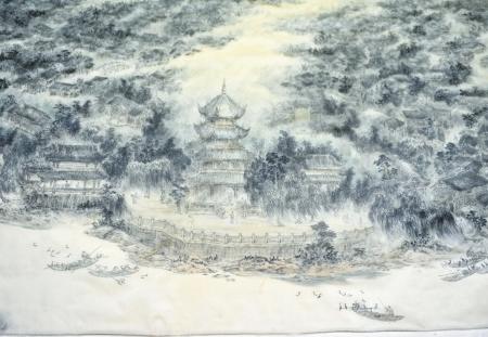 管苠冈说:“我的工作室本来在三圣花乡的画家村,但是容纳不下这张9米长的巨画,于是我朋友就把他华阳的别墅借给我画画。从6月到8月,我在里面画了足足有3个月,那段时间我把其他的工作全都推掉,也很少回家,吃住都在画旁边,每天早上7点起床,画到凌晨两三点过,中间还累病了去医院输液。”上个月,来自日本自创画会、日本美术院和新制作协会的16名艺术