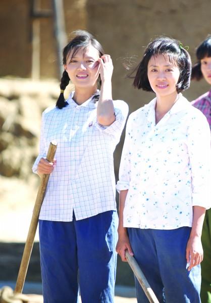 ▲电视连续剧《知青》剧照。左一为傅晶饰演的周萍,左二为张龄心饰演的孙曼玲。