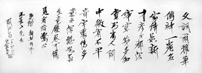 自谦不是书法家的周汝昌,幼少时即醉心欧楷笔法,20岁后又致力于唐人写经,深研《兰亭》后,得右军真脉,遂平生作书多行草,其“横逸飞动、笔笔不苟、使转敷畅、作草如真”的周体法书,在众多书家中以势明法合意美之笔、英风俊骨之墨神采焕然,只是受目力所限,70岁后便极少动墨了。这也是周汝昌书法作品存世稀少的原因。