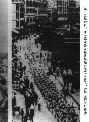 1925年6月,周士第率领铁甲车队参加省港工人罢工,游行支持五卅运动。