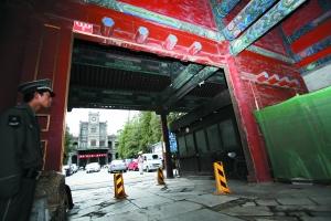 昨日下午5时许,张自忠路上的清陆军部和海军部旧址,一扇大门已经被卸下,放置在门口,附近还放置了许多建筑材料。大门一侧的门框和抱鼓石也不见了。
