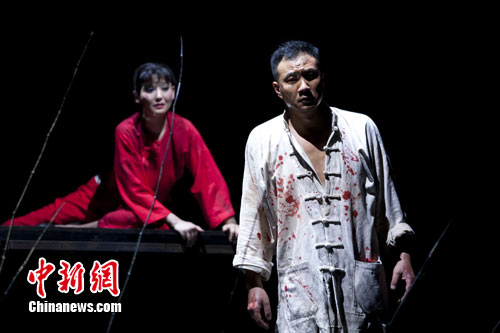 中新网北京9月24日电 (记者 应妮)9月24日曹禺先生诞辰100周年纪念日当天,北京人艺新排话剧《原野》正式登陆国家大剧院,成为此次纪念演出季中上演的最后一部作品。该剧以胡军、徐帆、濮存昕和吕中的全明星阵容向大师曹禺致敬。