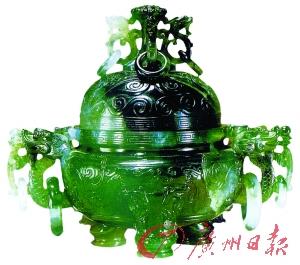 翡翠龙纹环耳盖炉(局部)