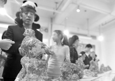 用10多公斤熊猫大便制成的17件雕塑作品昨日亮相