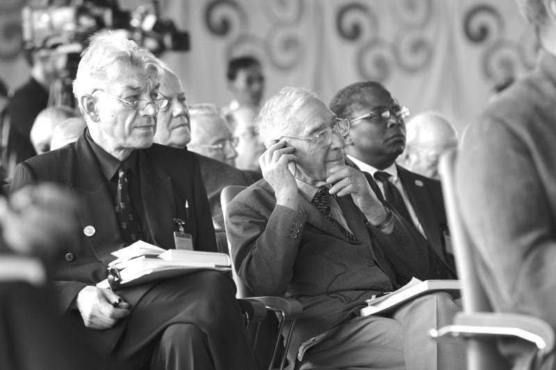 “美国的一个小男孩在 4 岁的时候,听了舅舅讲到的中国,产生了浓厚的兴趣,后来就关注和了解中国。小男孩80年后再次来到中国,他就是今天对话的一方,罗伯特·舒乐博士。”赵启正的开场白让大家充满了期待,而许嘉璐也“ 抖搂” 起了罗伯特·舒乐的一些家事:“今天是舒乐和夫人的钻石婚纪念日,他本该在家中接受亲人们的祝贺;而在从洛杉矶飞往香港的航班上,舒乐又度过了他 84岁的生日。面对全家几十人的劝阻,他说既然接受了邀请,就一定要去。于是他来了!”顿时,全场响起热烈的掌声。许嘉璐接着又“爆料”说,舒乐甚至推辞掉了昨晚的宴会,为的就是“养精蓄锐”,认真对话。