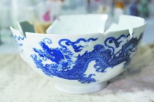 记者看到,那些康雍乾三朝的瓷器虽然图案精美、做工高超,但精品上的一道道白色石膏线,如同一道道疤痕,显得格外“刺眼”。原来,它们竟然是从3万多块残破的瓷片中拼出来的。