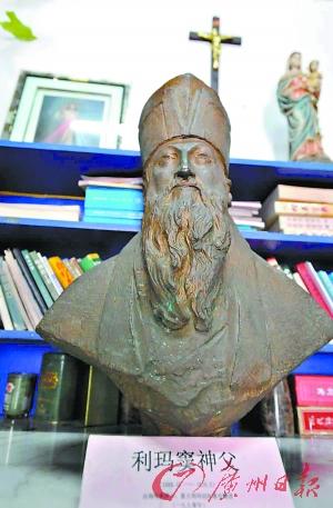 现存放在勒竹围教堂内的意大利赠送的利玛窦像。