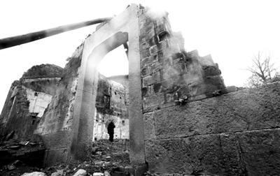 旧居的地基已被清理干净,并被重新打下地基浇下混凝土,旁边堆放着大量的石子和砖块,新房已在着手修建。往日旧居的一座石制拱门被人用电杆支撑着,岌岌可危。