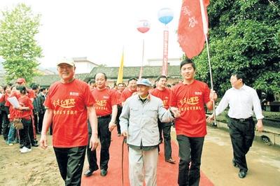 老红军谭萃维不久前参加重走红军路活动。黄春平 摄
