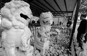 中山公园的兰亭八柱和兰亭碑、文津街老国图的文源阁碑、中国对外友协院中的绮春园铜狮……三年前公布的“圆明园流散文物调查报告”统计,圆明园文物散落在北京地区有近百件,包括碑碣、石雕、石刻、玉器、瓷器等,集中在十余处单位和民宅。