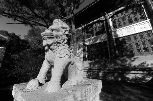 在文津街国家图书馆门前,一对威武的石狮满面沧桑,双爪和臀部还有修补的痕迹。“没错,这对劫后余生的石狮就是来自圆明园。”传达室的守门人对石狮的来历略知一二。石狮长170厘米,高约300厘米。上世纪30年代由圆明园移至此处。