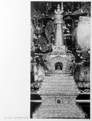 1860年被从圆明园掠走的鎏金佛塔(上图)而今摆在枫丹白露宫中国馆内最显著的位置,青铜鎏金,通体各层镶嵌着绿宝石,应是皇帝宝座前的摆放之物。