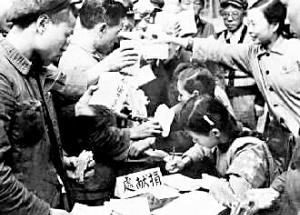 全国各地工商界踊跃捐献款项,支援志愿军。