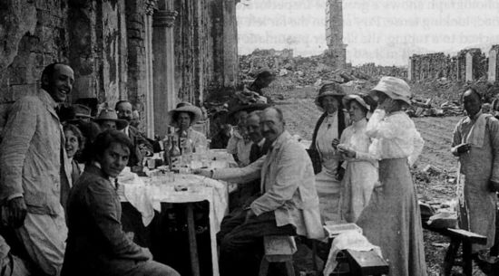 一些西方人在海晏堂背面聚餐,从照片上中国随从的服饰和头上的辨子来看,应该是清朝末年。