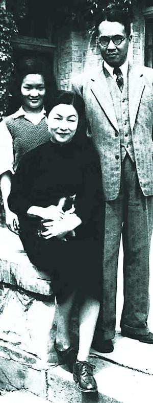 1950年,钱钟书、杨绛和女儿钱瑗在清华园。