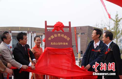 中新网龙虎山10月22日电(何柳斌 徐标华 盘现才)10月22日,中国徐悲鸿画院龙虎山创作基地揭牌仪式在龙虎山游客中心广场举行,徐悲鸿画院副院长张玉田、黎明中、谭全昌、郭银土等出席揭牌仪式。据悉,该基地是中国徐悲鸿画院在国内设立的第一个创作基地,对提升龙虎景区文化品位将起到极大的带动作用。